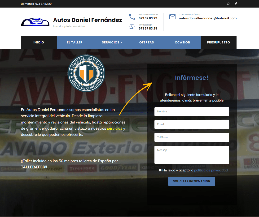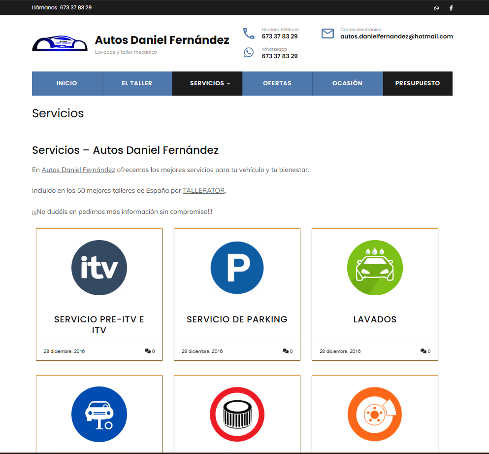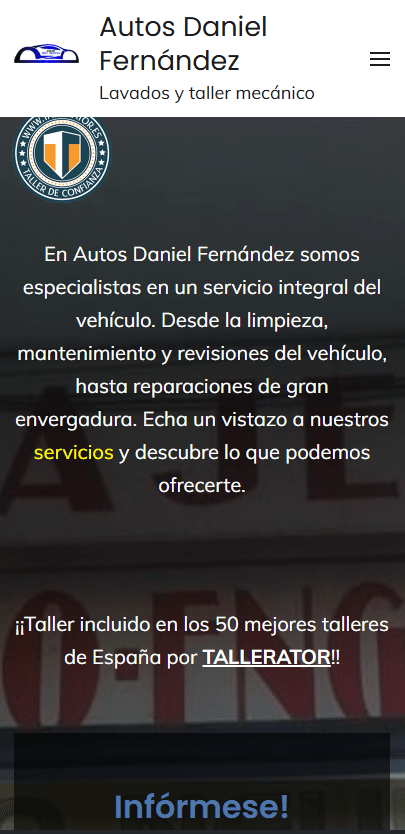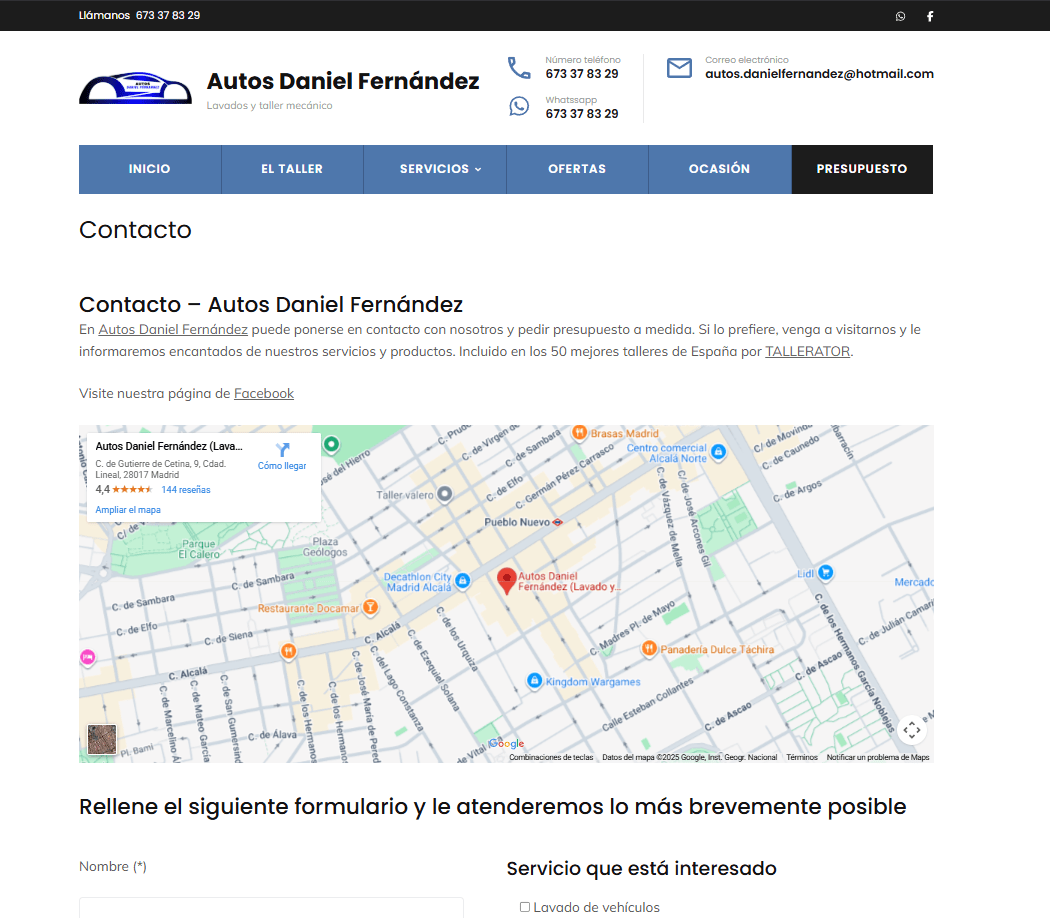 Autos Daniel Fernández buscaba renovar su presencia online, actualizando su sitio para reflejar profesionalidad, experiencia y los servicios actuales del taller (lavado, mecánica general, neumáticos, ITV preparación).