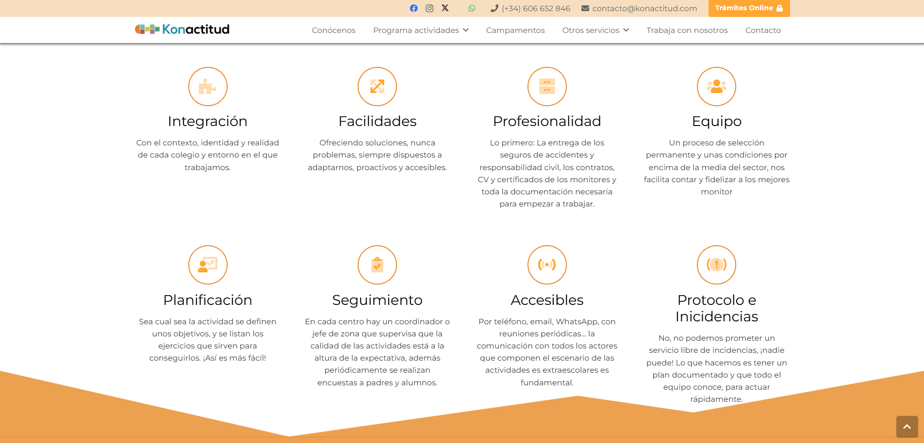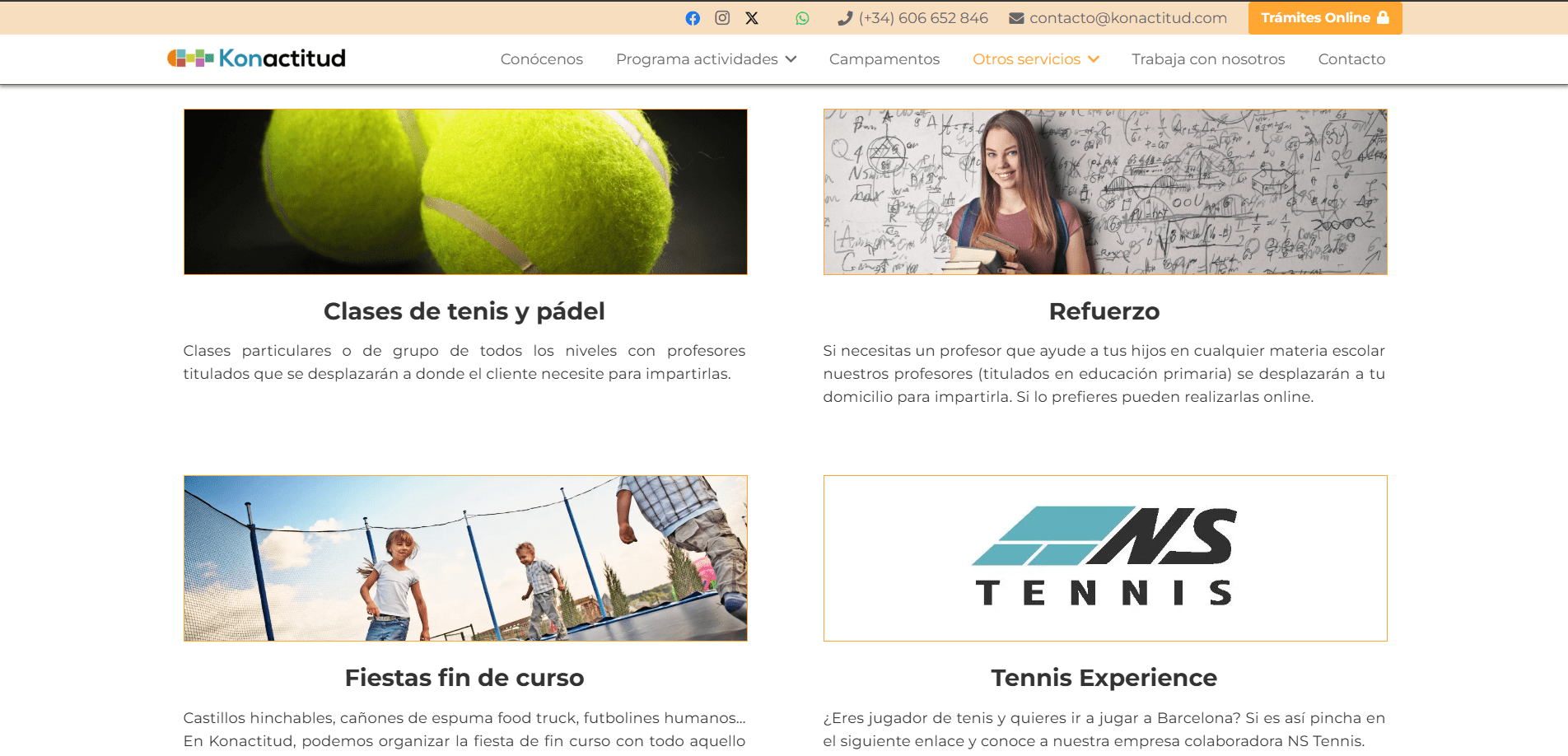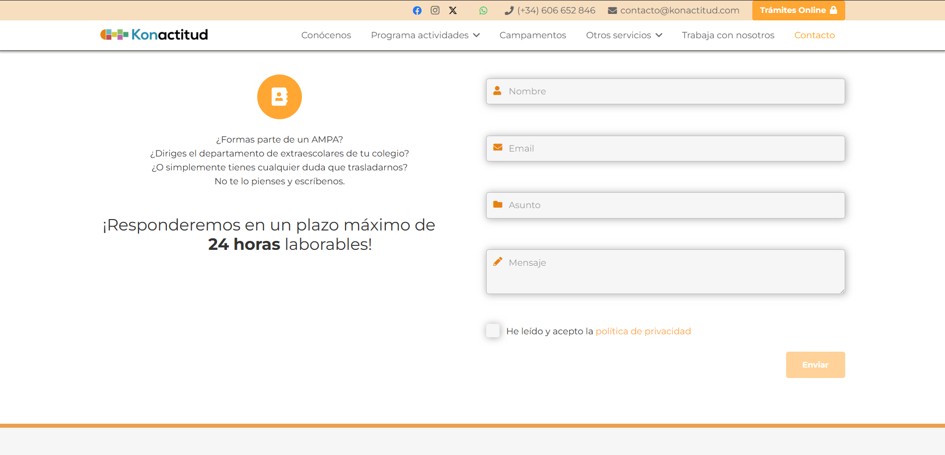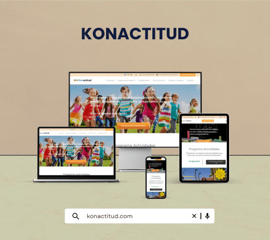 Konactitud contactó con Umbradev para renovar su presencia online y mejorar la experiencia de usuarios (familias, AMPAs, colegios). Se desarrolló un sitio web en WordPress con una arquitectura clara, navegación intuitiva, sección de inscripciones online, programa de actividades visibles y presentación de servicios extraescolares y campamentos.